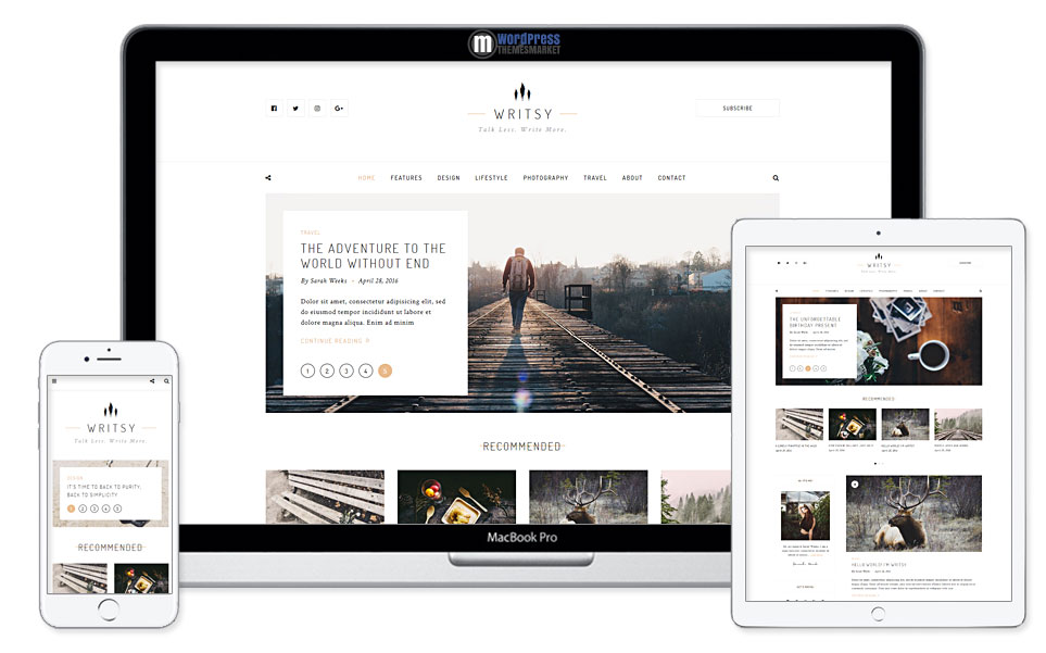 Writsy is a powerfully pliable and beautifully graphically designed, technologically resourcefull, fast and elegant Clean & Faded Vintage WordPress Blog Theme that is perfectly suited for wide-range of blog niches like blog, fashion, photography, travel and others.